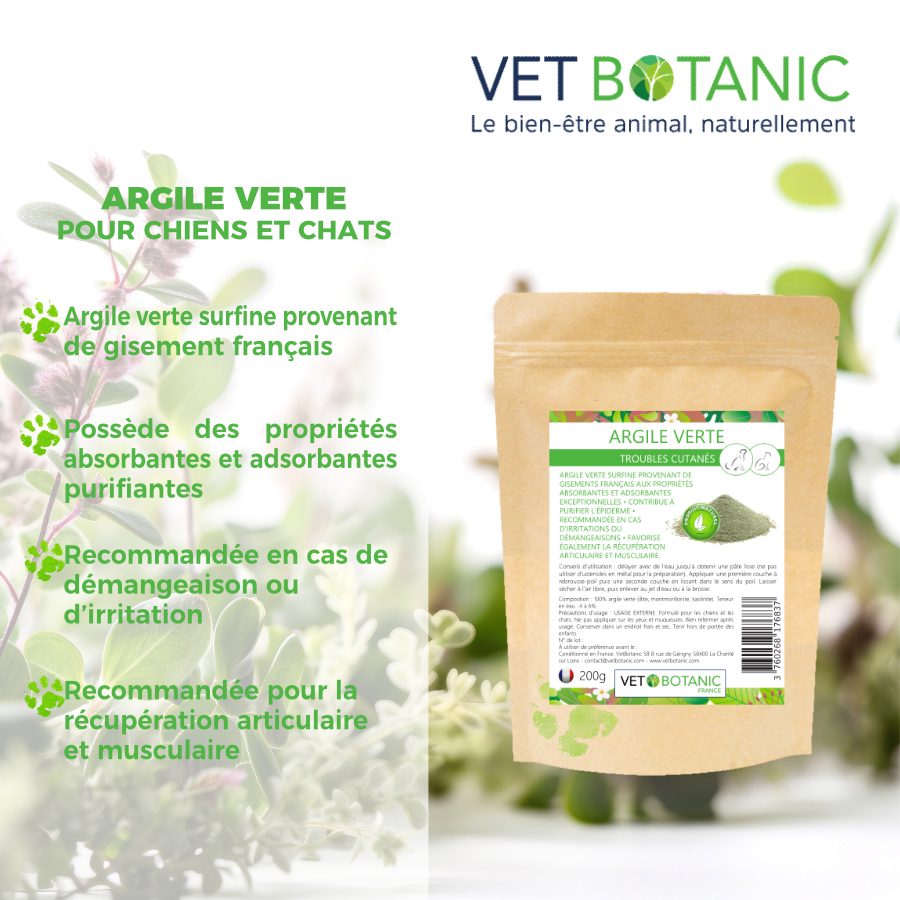 ARGILE VERTE EN POUDRE – Troubles cutanés du chien et du chat